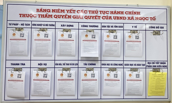 Thực hiện chương trình cải cách thủ tục hành chính gắn với xây dựng chính quyền phục vụ, UBND xã Ngọc Tố đã triển khai niêm yết công khai đầy đủ các thủ tục hành chính thuộc thẩm quyền giải quyết tại trụ sở Trung tâm Phục vụ hành chính công.